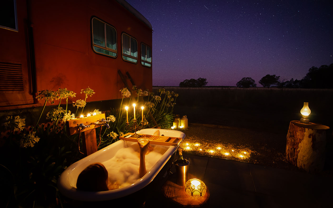 A spacious open plan carriage containing a King size bed, full size bathroom with shower, toilet and vanity, large living area with a slate billiard table, dining area and a kitchen/bar area. Two reverse cycle air conditioners ensure comfort in all seasons. The carriage is heated or cooled prior to guests arrival.